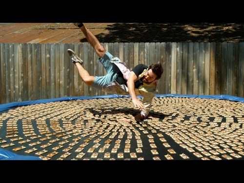 Устали на работе? Посмотрите, как отдыхают британцы: прыгают на батут с тысячей мышеловок.
