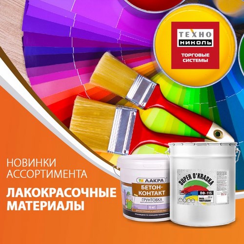 Теперь в ТехноНИКОЛЬ Торговые Системы Вы можете приобрести ЛАКОКРАСОЧНЫЕ МАТЕРИАЛЫ торговых марок Лакра и Super O’Kraska!